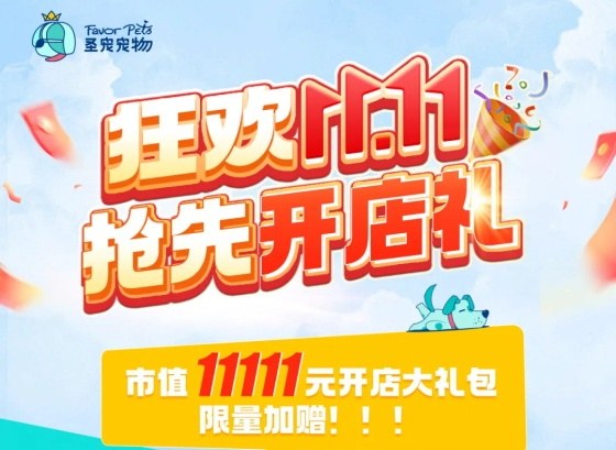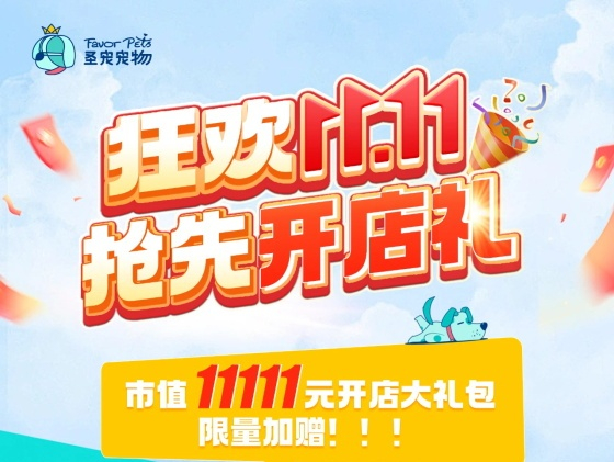 11.11倒計時丨市值11111開店大禮包名額告急,手慢無! 圣寵寵物12周年遇上雙11,限時開店豪禮大方送! 更多>>